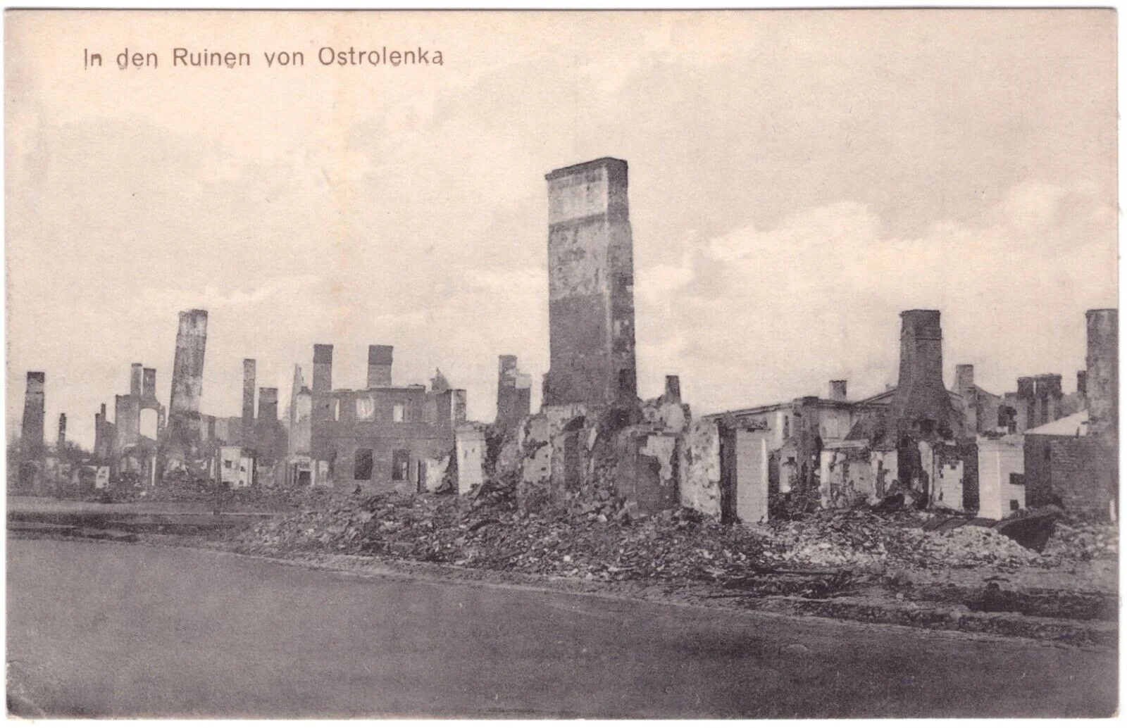 Liczne polskie miasta w ruinę obróciła II wojna światowa. Największy konflikt zbrojny w dziejach przyniósł wielu z nich ogromne straty zarówno ludnościowe, jak i materialne. Często zapomina się jednak, iż front (czasem nawet kilkukrotnie) przechodził przez ziemie polskie również w czasie I wojny światowej, przynosząc nierzadko jeszcze większe zniszczenia, niż w latach 1939-1945. Do takich miejsc należy Ostrołęka, w której Wielka Wojna poczyniła duże spustoszenie. Znacząco spowolniła ona rozwój gospodarczy miasta, a jej ślady usuwano jeszcze przez długie lata.
