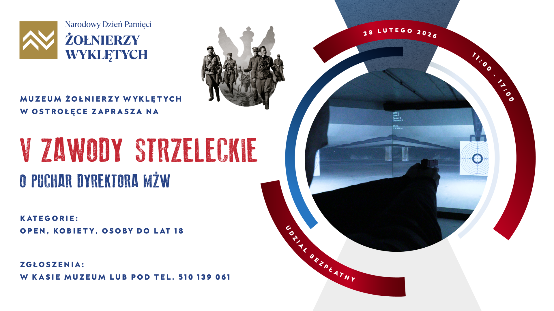 Już po raz piąty organizujemy Zawody Strzeleckie o Puchar Dyrektora Muzeum Żołnierzy Wyklętych. Odbędą się one w ramach obchodów Narodowego Dnia Pamięci "Żołnierzy Wyklętych" "Podziemne ścieżki wolności".