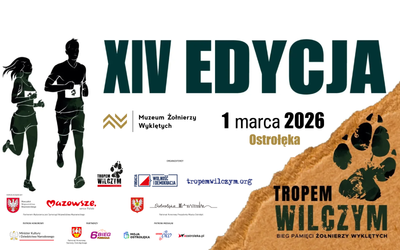Zapiszcie się na XIV Bieg Pamięci Żołnierzy Wyklętych „Tropem Wilczym” organizowany w Ostrołęce przez Muzeum Żołnierzy Wyklętych! Spotkajmy się na lin