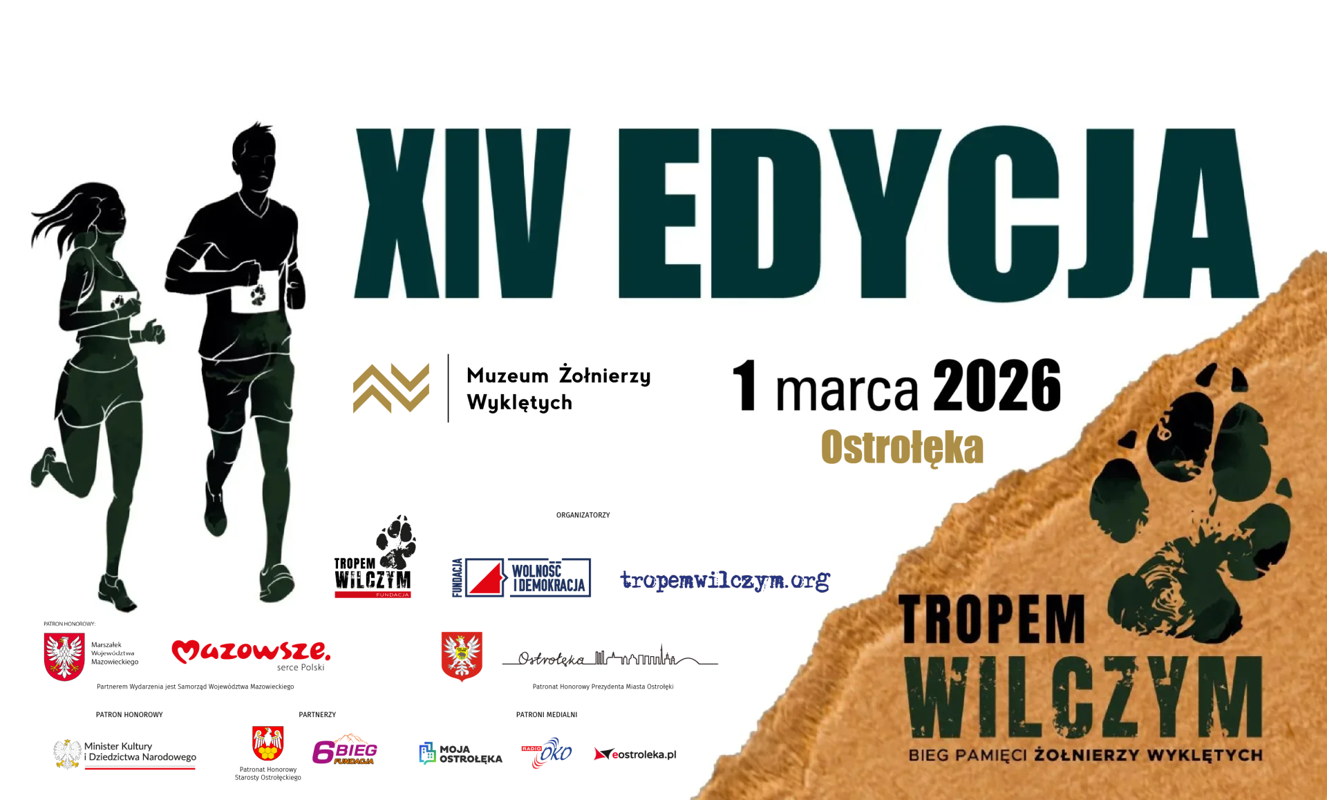 Zapiszcie się na XIV Bieg Pamięci Żołnierzy Wyklętych „Tropem Wilczym” organizowany w Ostrołęce przez Muzeum Żołnierzy Wyklętych! Spotkajmy się na linii startu w niedzielę 1 marca 2026 roku!