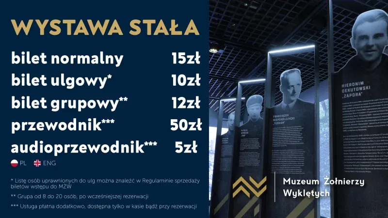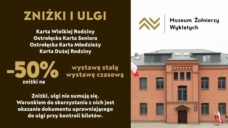 Listę osób uprawnionych do ulg można znaleźć w Regulaminie sprzedaży biletów wstępu do Muzeum Żołnierzy Wyklętych.