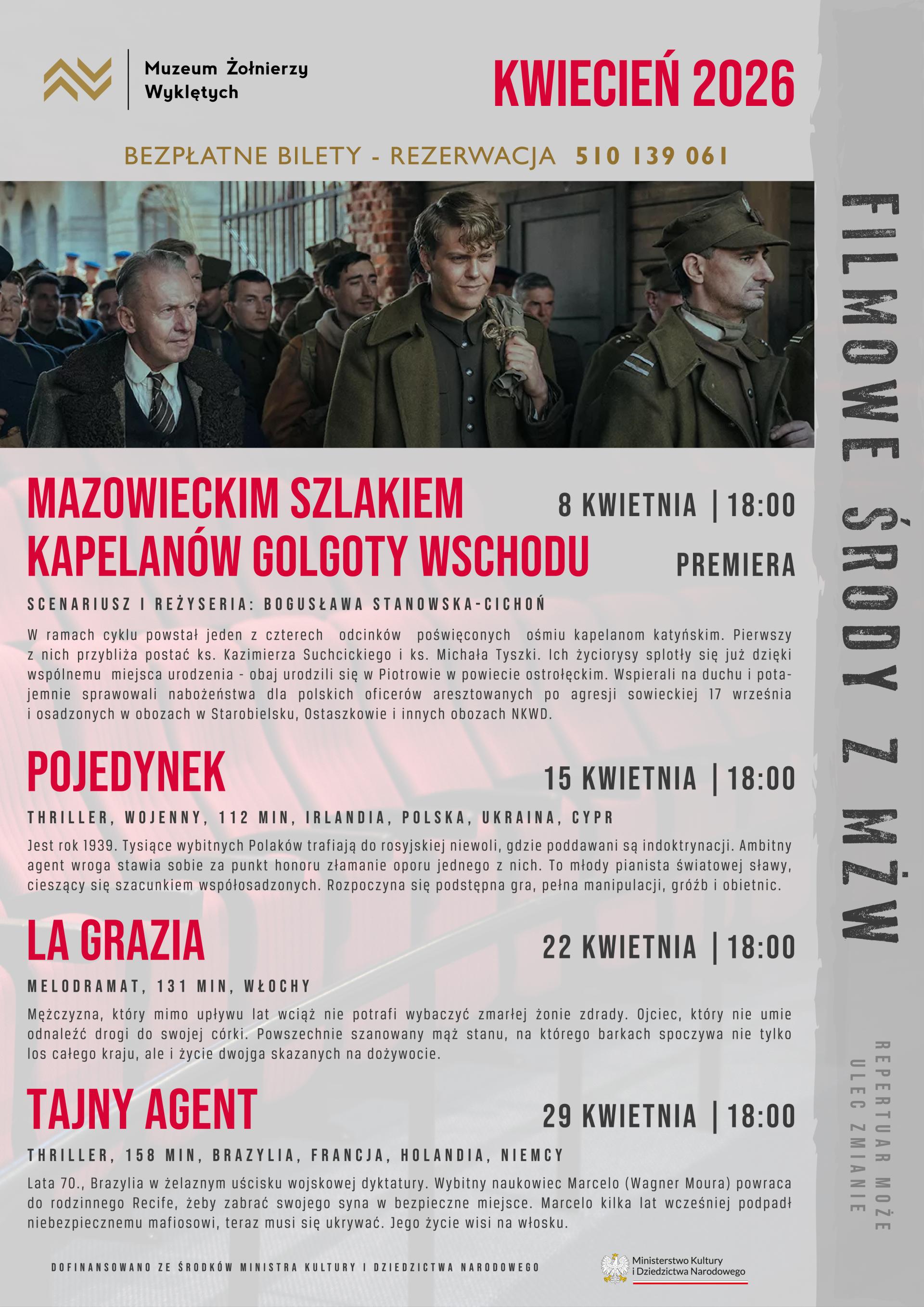Zapraszamy do zapoznania się z repertuarem "Filmowych śród z MŻW" w kwietniu 2026.