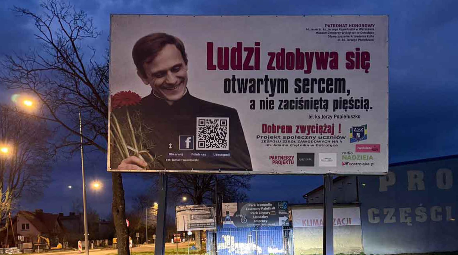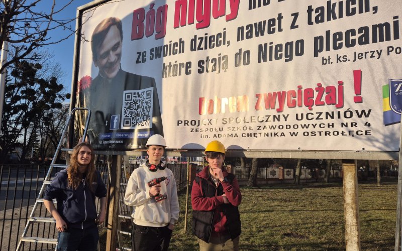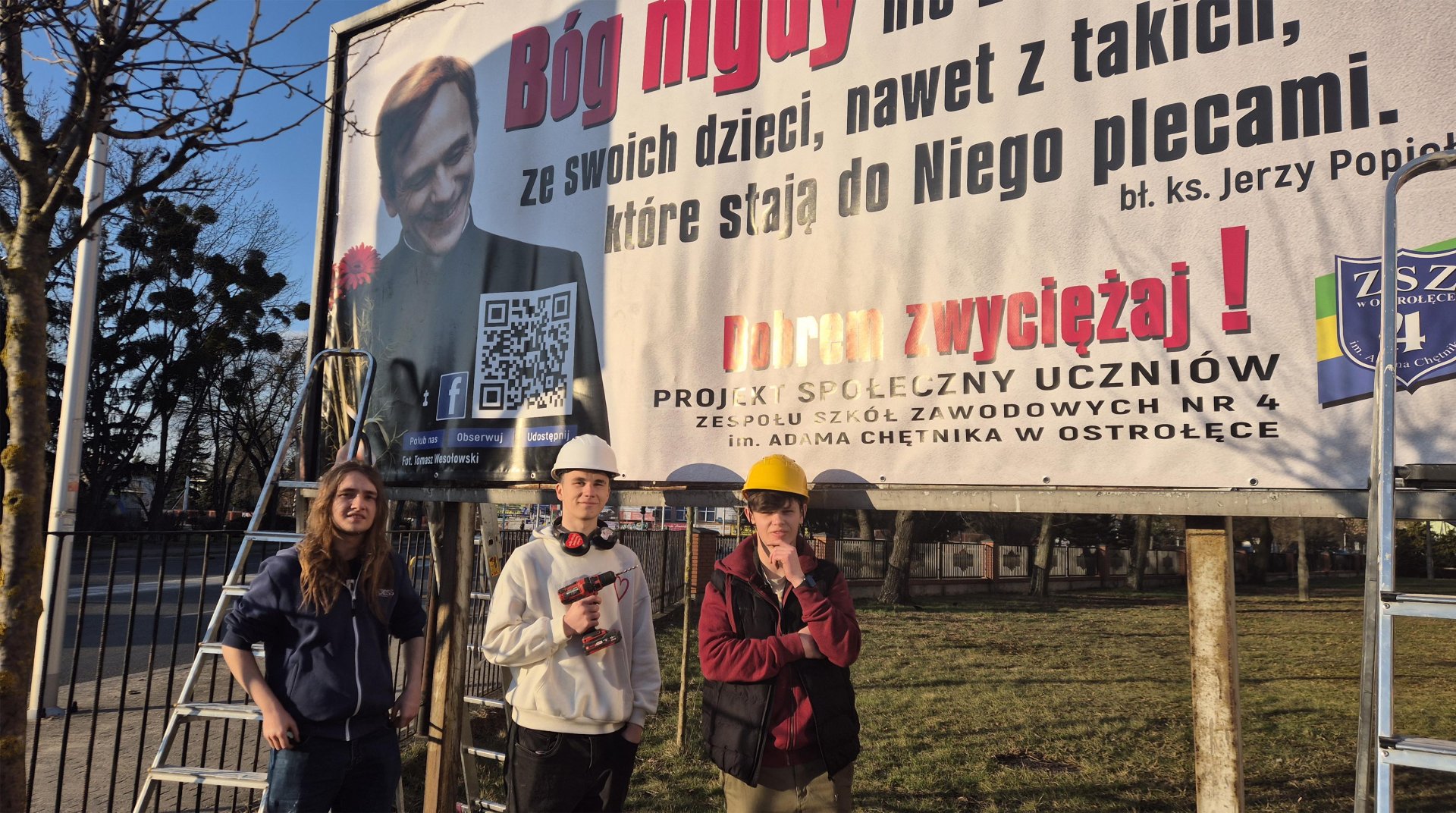 Projekt „Dobrem zwyciężaj” to przykład inicjatywy młodzieży, która łączy działania w przestrzeni publicznej z realnym spotkaniem z historią. Uczniowie Zespołu Szkół Zawodowych Nr 4 w Ostrołęce realizują projekt, w ramach którego w kilku miastach pojawiły się billboardy z przesłaniem bł. ks. Jerzego Popiełuszki.