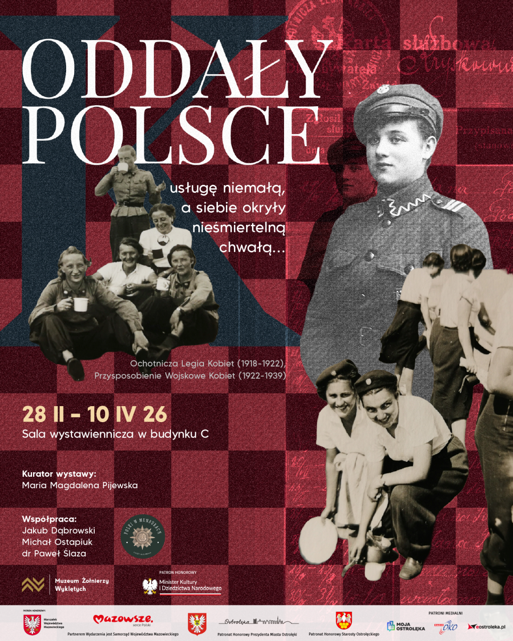 W ramach obchodów Narodowego Dnia Pamięci "Żołnierzy Wyklętych" zapraszamy na otwarcie wystawy pt. "Oddały Polsce usługę niemałą, a siebie okryły nieśmiertelną chwałą… Ochotnicza Legia Kobiet (1918-1922), Przysposobienie Wojskowe Kobiet (1922-1939)".
