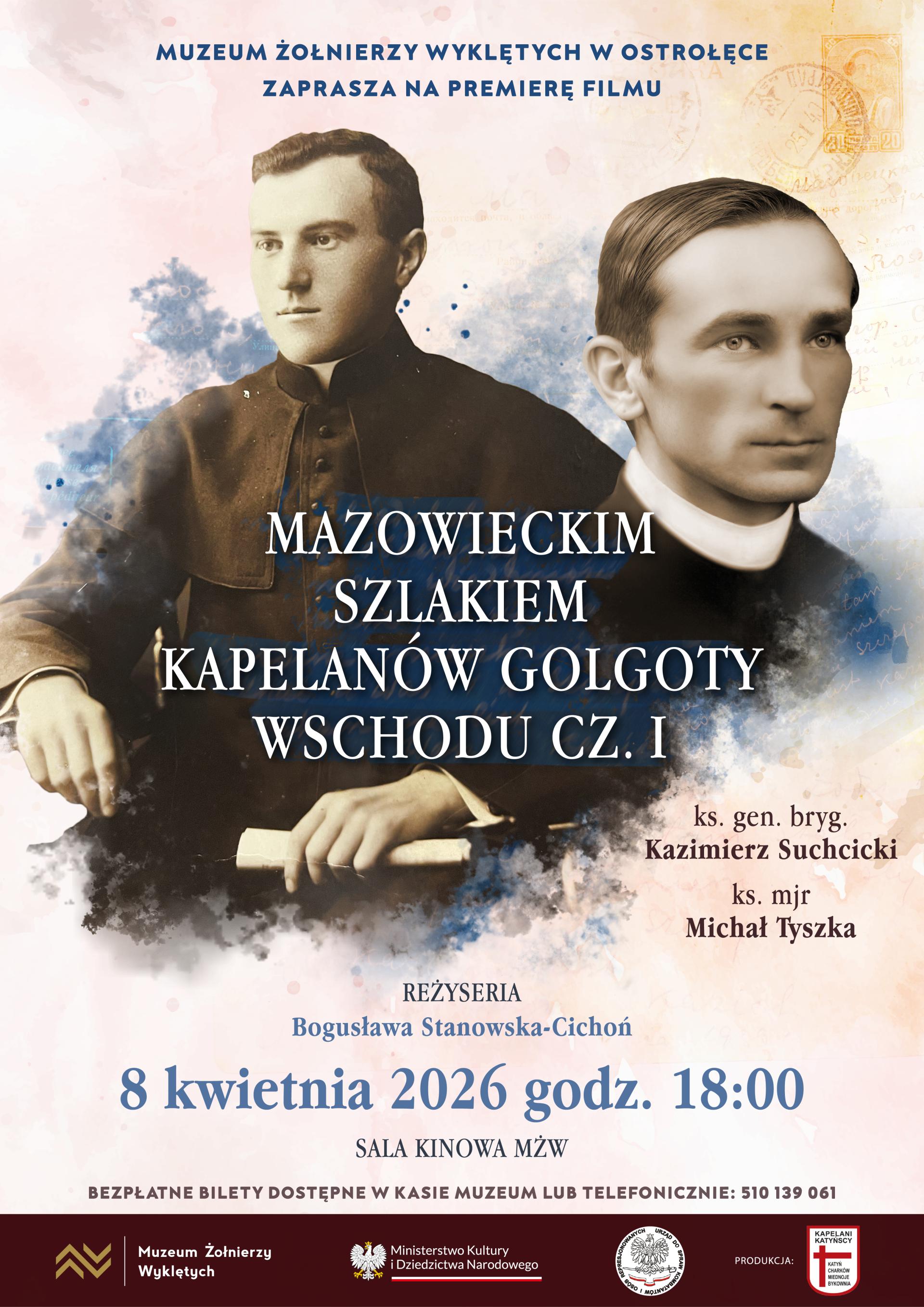 W środę 8 kwietnia o godz. 18.00 wyświetlimy film "Mazowieckim szlakiem Kapelanów Golgoty Wschodu. Cz. 1". Bezpłatne bilety na seans dostępne w kasie bądź po rezerwacji telefonicznej (510 139 061).